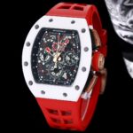【 RICHARD MILLE 】 Richard Mille RM011-FM series, carbon fiber material restores the original texture, high-grade original black ceramic, white ceramic restores the original, perfect ergonomic design, consistent with the pursuit of perfection of the brand’s iconic building. Every component of RM011 is an aesthetic expression of its function. The RM011-FM watch retains the most recognizable iconic appearance, but the craftsmanship used is still far beyond the past. As for the case, the titanium style is shown in the picture, but there are also rose gold and titanium versions to choose from, but no matter which one, they all have a fine brushed surface, which is matched with polished chamfers, showing a sharp contrast. Equipped with a 7750 chronograph mechanical movement, it is clearly marked with functional fonts (Start/Stop and Reset/Fly-back). Its design is inspired by the pedals in F1 racing. All these optimization changes make this RM011-FM flyback chronograph automatic watch more sporty and trendy than previous styles.